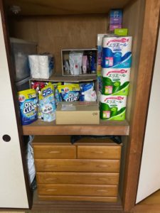 今回は、まず衣類の見直しをして、日用品のストック、レジャーグッズなどを収めるために、ベッドや家具を配置替えをして、モノの大移動をしました。